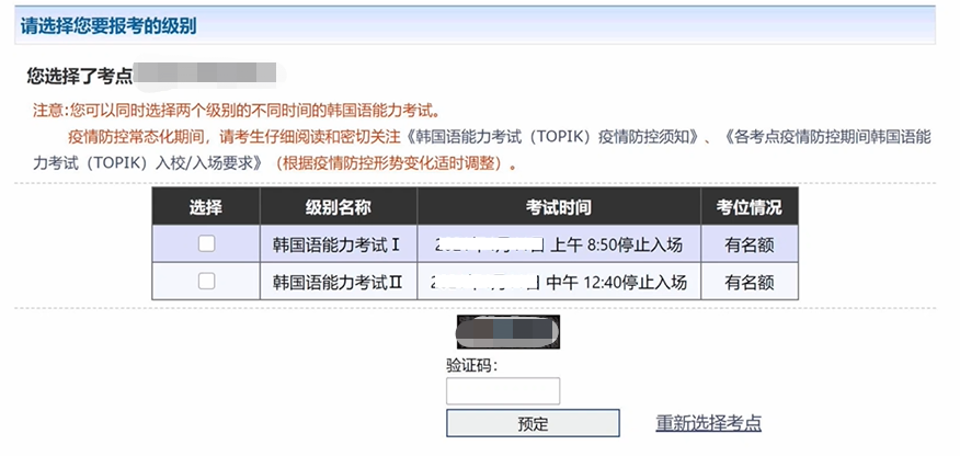 “考位情况”显示“有名额”就说明还有考位,勾选之后在下方输入验证码,点击“预定”,我们就成功一大半啦!